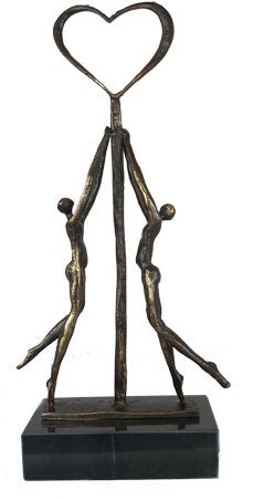 Het sculptuur staat op een sokkel met afmeting 12x6x3 cm .