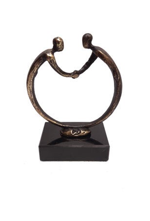 Dit sculptuur wordt gemaakt van een tin legering en daarna verbronsd.