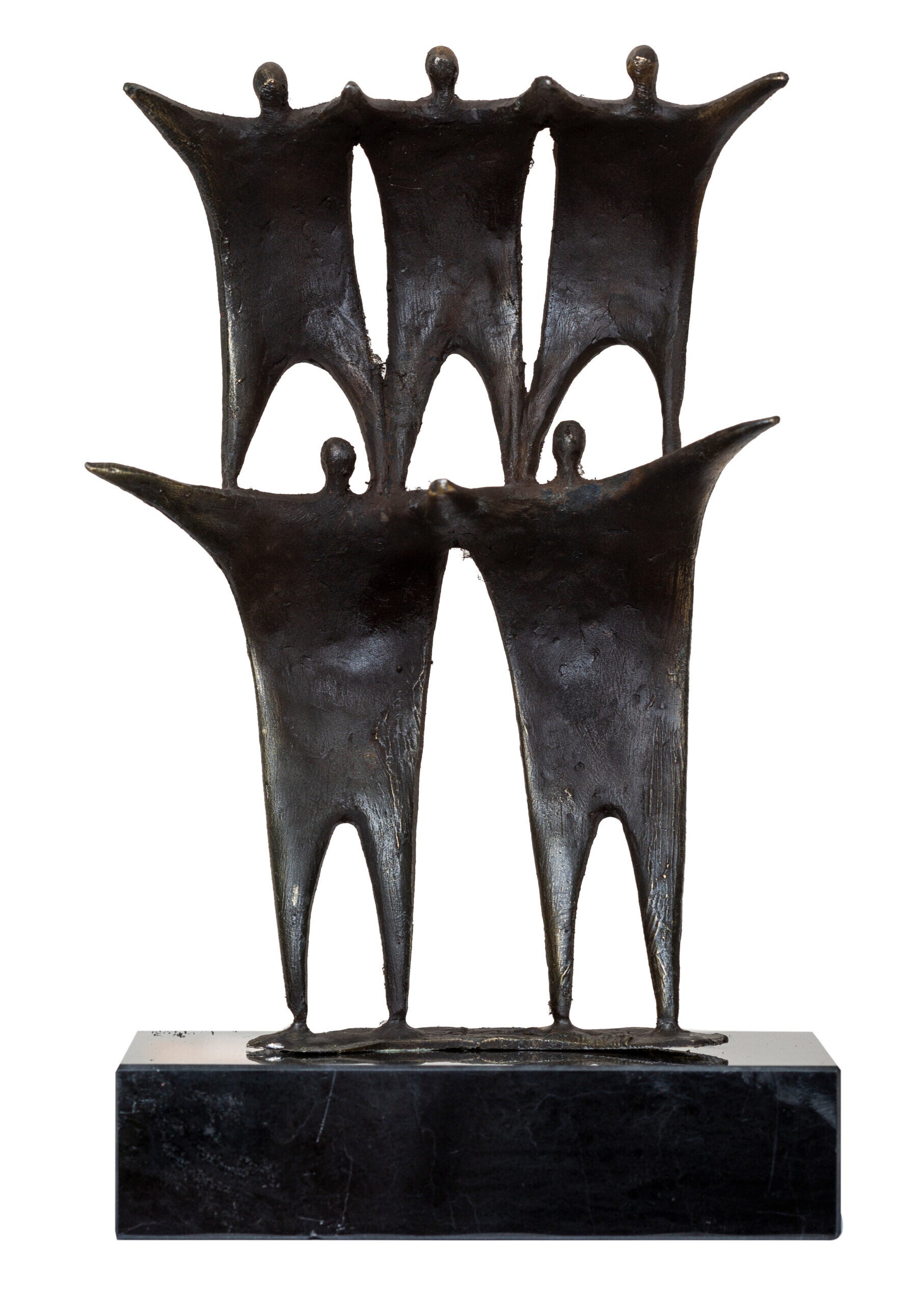 Dit sculptuur wordt gemaakt van een tin legering en daarna verbronsd.