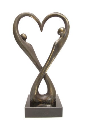 Dit sculptuur wordt gemaakt van een tin legering en daarna verbronsd.