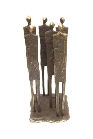 Dit sculptuur wordt gemaakt van een tin legering en daarna verbronsd.