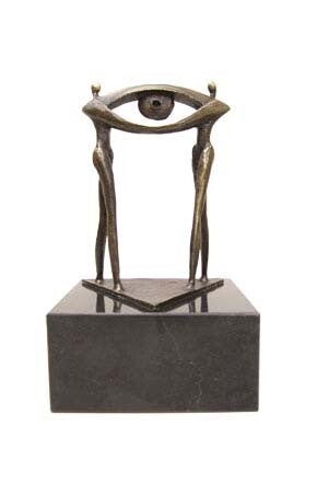 Het sculptuur staat op een marmeren sokkel met afmeting 100x100x50mm.