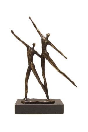 Dit sculptuur wordt gemaakt van een tin legering en daarna verbronsd.