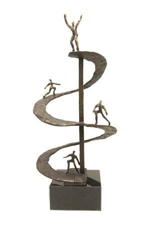 Dit sculptuur wordt gemaakt van een tin legering en daarna verbronsd.