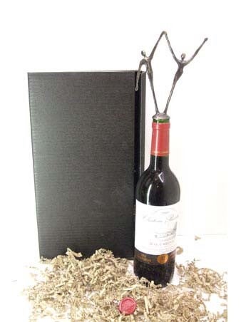 Het wijnpakket wordt geleverd met een fles wijn en een bijpassende kartonnen doos.