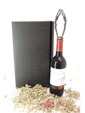 Het wijnpakket wordt geleverd met een fles wijn en een bijpassende kartonnen doos.