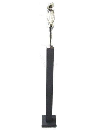Dit sculptuur wordt gemaakt van een tin legering en daarna verbronsd.