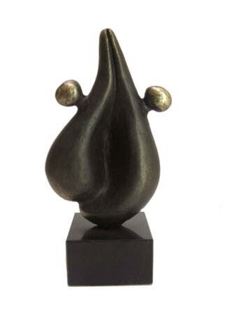 Dit sculptuur wordt gemaakt van een tin legering en daarna verbronsd.