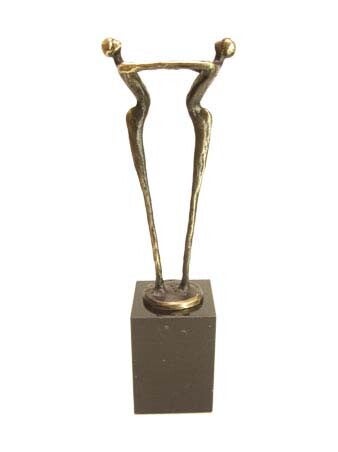 Dit sculptuur wordt gemaakt van een tin legering en daarna verbronsd.