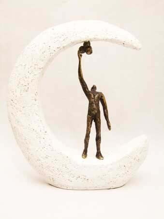 Dit sculptuur wordt gemaakt van een tin legering en daarna verbronsd.