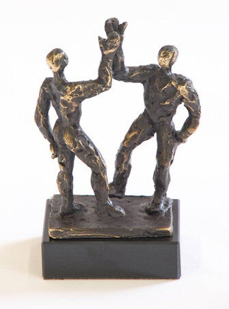Dit sculptuur wordt gemaakt van een tin legering en daarna verbronsd.