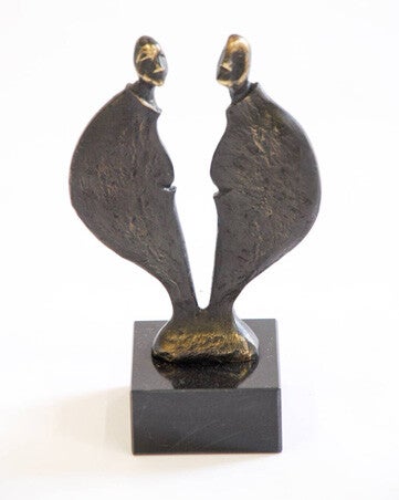 Dit sculptuur wordt gemaakt van een tin legering en daarna verbronsd.