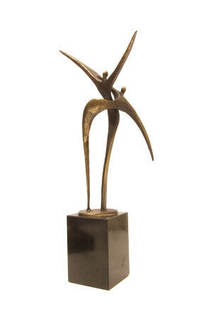 Dit sculptuur wordt gemaakt van een tin legering en daarna verbronsd.