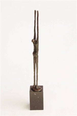 Dit sculptuur wordt gemaakt van een tin legering en daarna verbronsd.