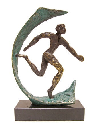 Dit sculptuur wordt gemaakt van een tinlegering en daarna verbronsd.