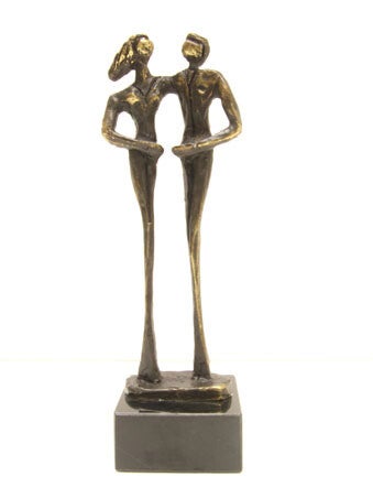 Dit sculptuur wordt gemaakt van een tinlegering en daarna verbronsd.