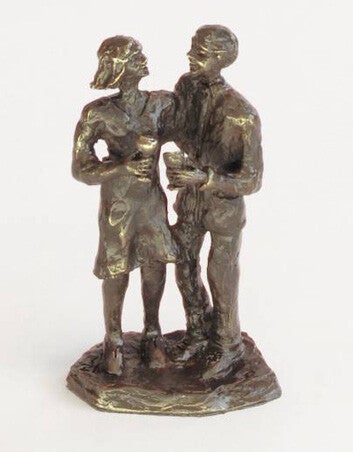 Dit sculptuur wordt gemaakt van een tinlegering en daarna verbronsd.