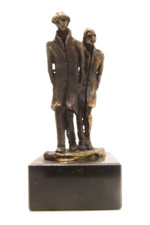 Dit sculptuur wordt gemaakt van een tinlegering en daarna verbronsd.