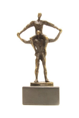 Dit sculptuur wordt gemaakt van een tinlegering en daarna verbronsd.