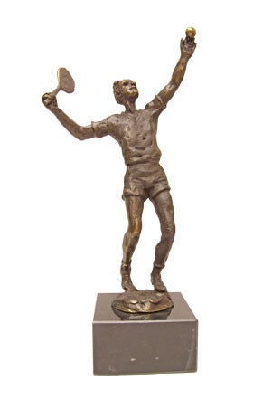 Dit sculptuur is gemaakt van een tin legering en daarna verbronsd.