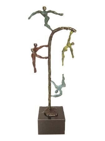Skulptur aus einer Zinn-Legierung hergestellt und dann mit einer Bronze Farbe bearbeitet. Die Skulptur steht auf einem schwarzen Marmorsockel. Die Skulptur ist von einer grünen, roten, gelben und blauen Patina versehen.